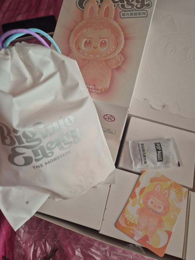 Dettagli del prodottoPeluche Labubu della serie Big Into Energy di Pop Mart, con tema Happiness.