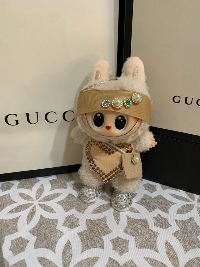 Outfit Labubu comprende -fascia per testa -top -borsa -orecchino (no scarpe) Decorato con strass e dettagli gioiello. Accessorio elegante e di tendenza.