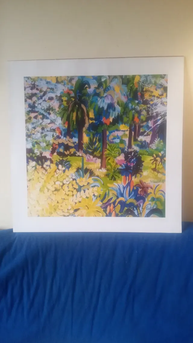 Dettagli del prodottoSplendido foglio con un design vivace di un giardino tropicale, pronto per essere incorniciato. - Motivo: Giardino rigoglioso con palme e fiori colorati. - Include retro per il montaggio su un telaio. La descrizione è stata tradotta automaticamente.