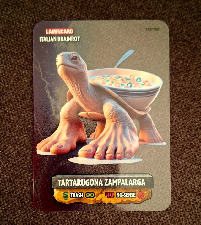 Lamincard della serie Multiverse. - Italian Brainrot - Numero: 110/182 - Tartarugona Zampalarga - Trash: 80 - No-Sense: 40