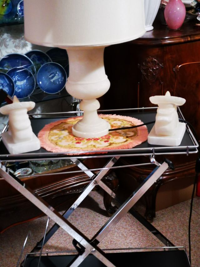 Buono stato · lampada + 2 sombreri in alabastro Spagna · Bianco · Marmo e Pietra