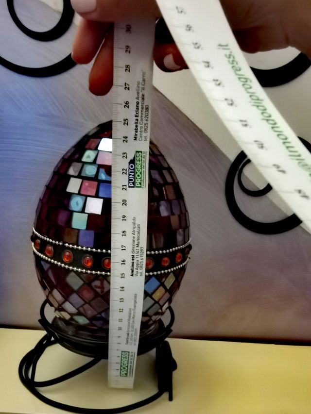 Dettagli del prodottoLampada mosaico con luce soffusa, in vetro e ferro battuto. Da atmosfera elegante. Misure del prodotto