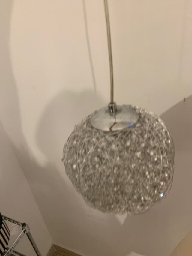 Dettagli del prodottoPiccolo lampadario a soffitto a sfera in acciaio ideale per piccolo ambiente o calato su una toilette Misure del prodotto