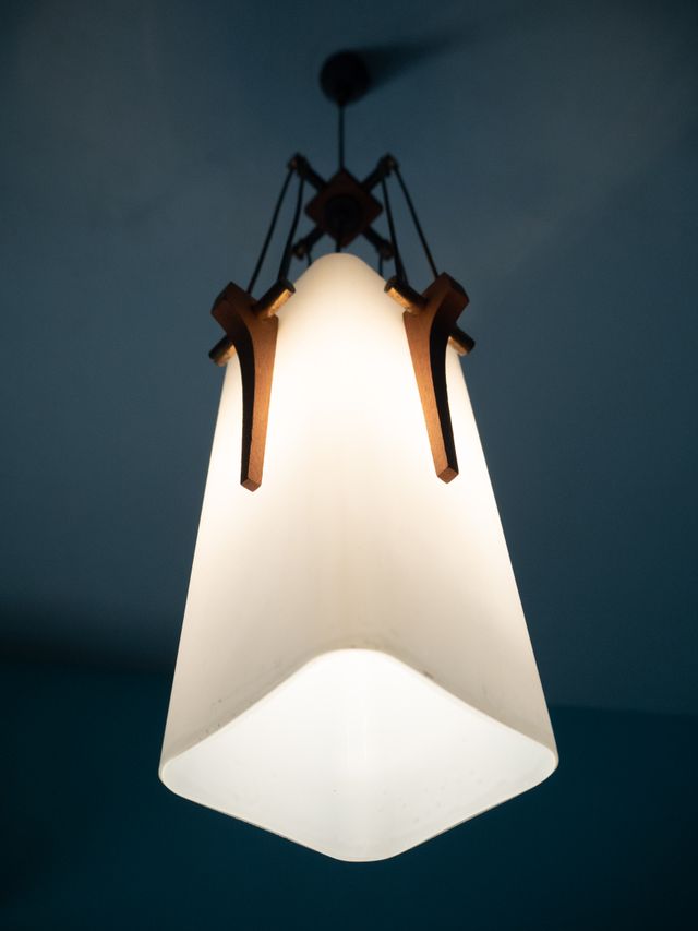 Dettagli del prodottoBellissima lampada stile svedese anni '50 completamente originale, realizzata con vetro opalino bianco, legno di teak e ottone. I segni del tempo ne impreziosiscono la bellezza. A richiesta posso inviare ulteriori foto, che come quelle pubblicate, sono parte integrante dell'annuncio.