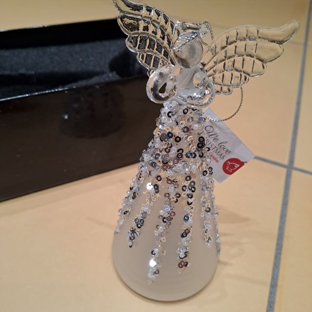 Lampada angelo natalizia in vetro e glitter. Nuova