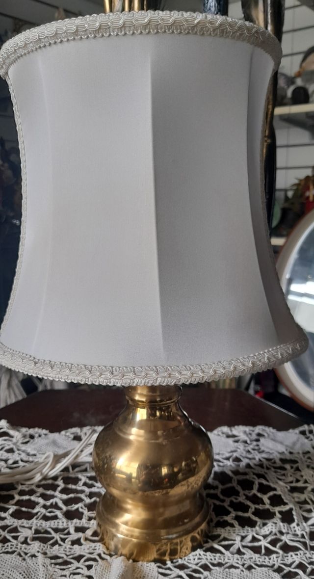 Lampada appoggio vintage ,base in ottone con paralume altezza con paralume 34 cm largo max paralume cm 20