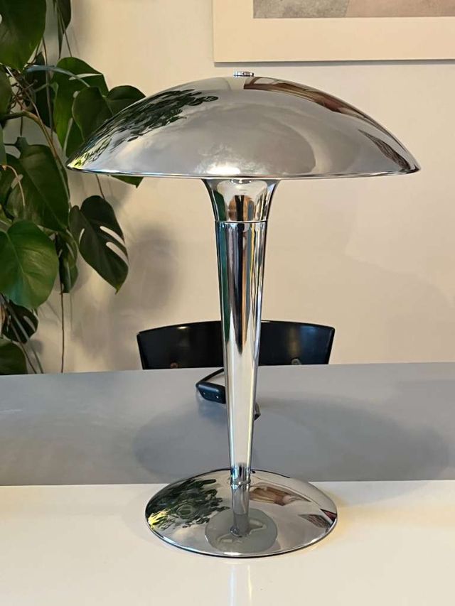 Dettagli del prodottoLAMPADA VINTAGE IN STILE BAUHAUS ,ACCIAO CROMATO ,FUNZIONANTE,OTTIME CONDIZIONI,MONTA DUE LAMPADINE ATTACCO PICCOLO,LE MISURE SONO:ALTEZZA CIRCA 50 CM,DIAMETRO CAPPELLO CIRCA 35 CM.