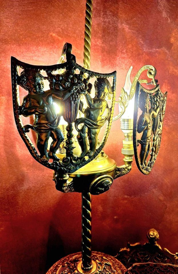 Dettagli del prodottoantica lampada a 3 luci con meravigliose ventole scudi con cherubini putti