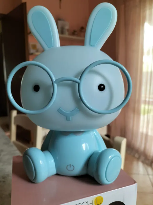Dettagli del prodottoLampada decorativa a forma di coniglio, ideale per la cameretta dei bambini. Il design simpatico con gli occhiali la rende un elemento d'arredo divertente.