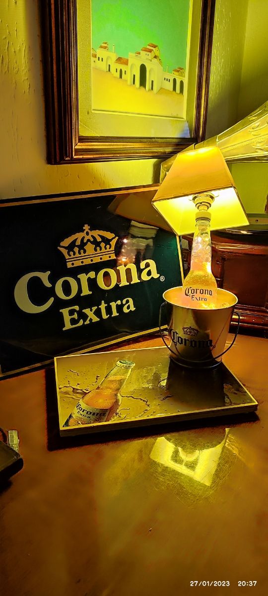 lampada Corona, prodotto realizzato a mano con base in legno, stampa logo, doppia illuminazione. Disponibilità solo 3 pezzi.