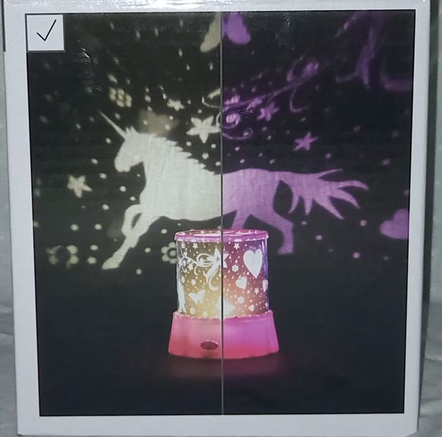 lampada con sagoma crea immagini di unicorni, fiori, farfalle, cuori... per bambini, mai usata, in scatola originale chiusa.
