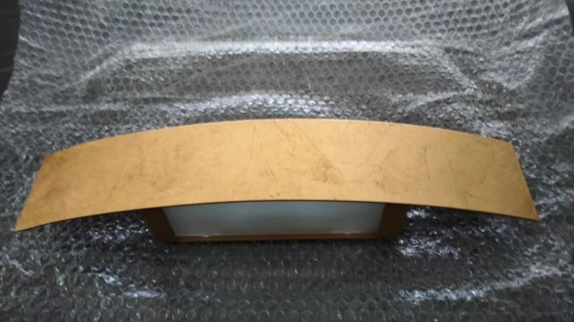 Dettagli del prodottoLampada da parete in foglia d'oro munita di lampada a basso consumo, con fascio di luce in direzione verso l'alto ed il basso, misura del frontale in foglia d'oro lung. 41 cm. alt. 7 cm. lung. scatola per cablaggio 21 cm. spessore totale da parete 7 cm.