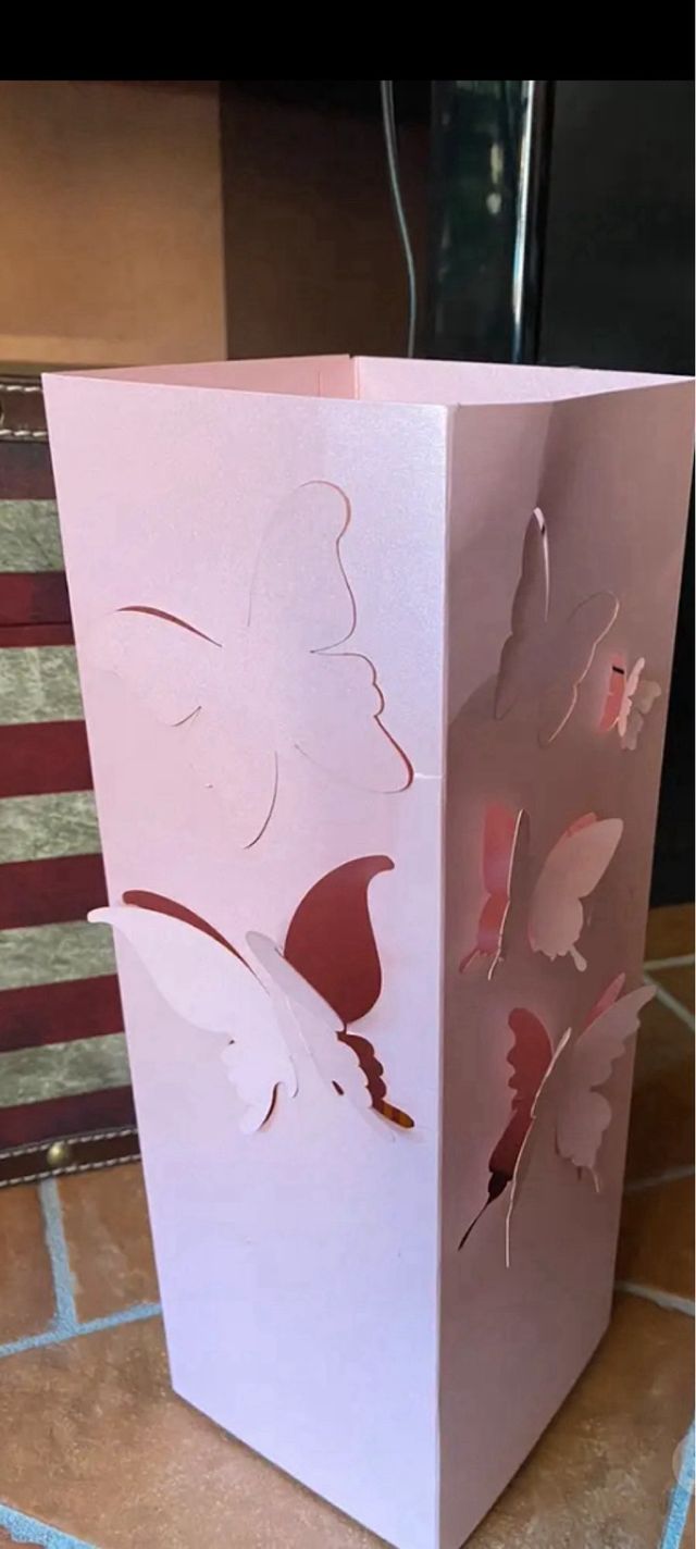 Lampada da tavolo rosa con farfalle