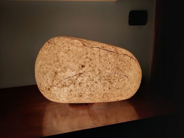 Lampada da tavolo "Tarogo" - linea Botanic Stonelites. Leggerissima, fatta di carta e foglie. Alt. 26 cm ca. x Lungh. 40 cm ca. x Largh. 26 cm ca.