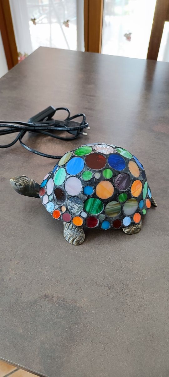 Mai utilizzata, è molto decorativa e molto di effetto quando è accesa. È in pasta di vetro e metallo brunito.