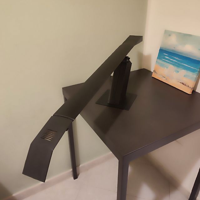 lampada design con testa pieghevole. colore nero. molto particolare. piccola scheggiatura in prossimità della luce, molto poco visibile