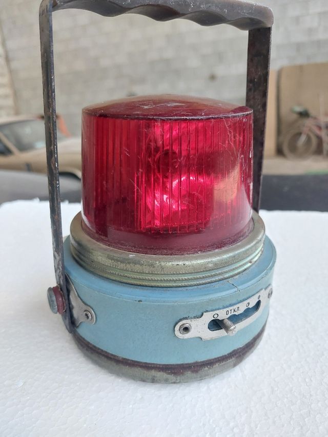 Dettagli del prodottoAntica lampada di emergenza, in buone condizioni, con struttura in metallo color azzurro e lente rossa. )