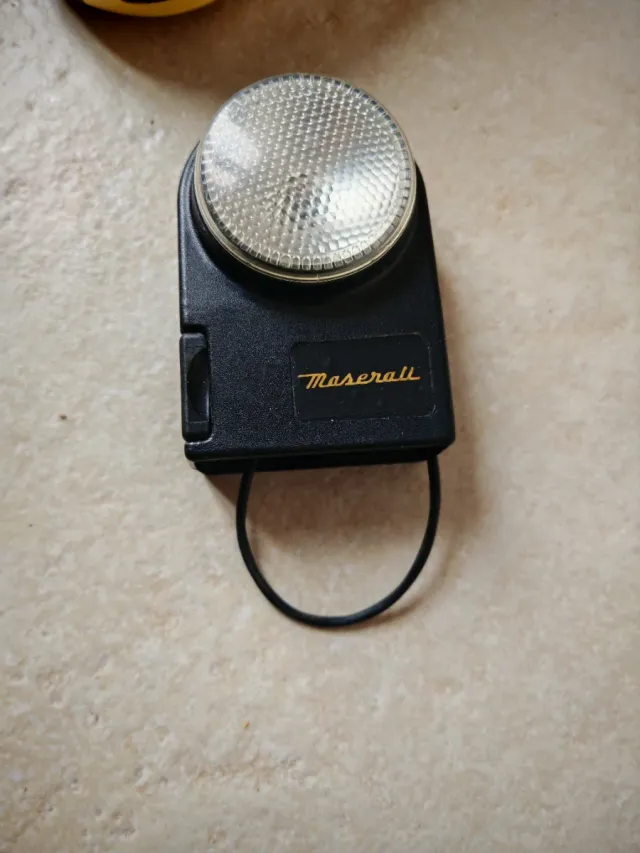 Lampada di emergenza con logo Maserati. - Design compatto e funzionale. - Anello di aggancio in gomma.