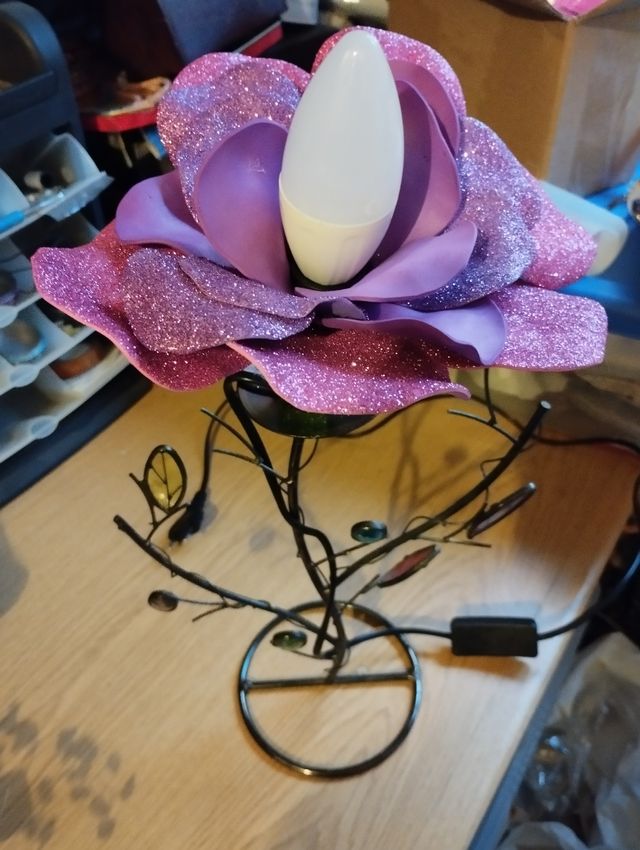 Rosa fatta amano con luci da mettere come lampada da mettere come lampada per comodino o per arredo