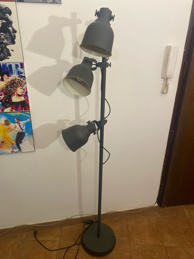 Dettagli del prodottoLampada da terra a 3 faretti, grigio scuro. HEKTAR. In acciaio.