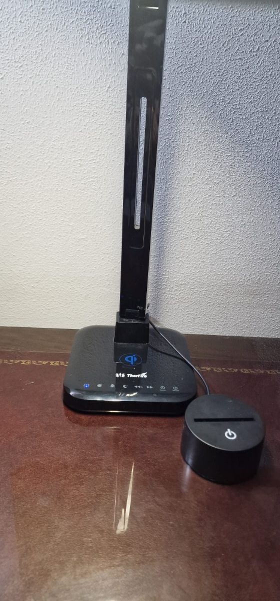Dettagli del prodottoLampada led da scrivania dotata di caricabatterie per smartphone (per i modelli compatibili) e funzionalità: luce lettura, regolazione intensità, timer, luce notturna. Completa di cavo, caricabatterie apposito. Come nuova