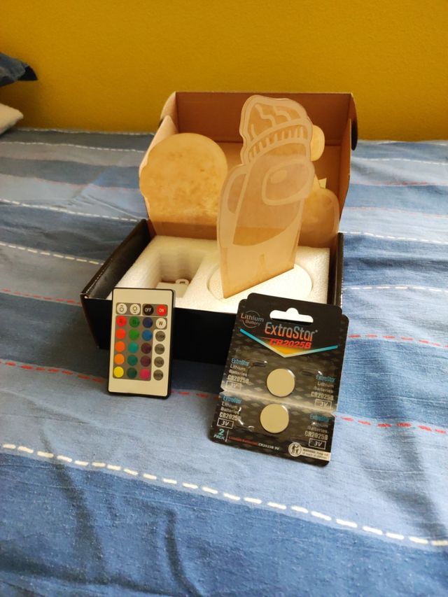 Lampada luce con telecomando e pile nuove, molte variazioni di colore. Funziona a batterie. L' opzione a corrente funziona con difficoltà.
