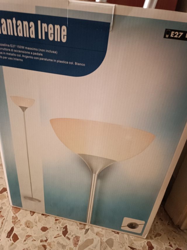 lampada da terra,piantana nuova mai usata ancora inscatolata. con pulsante a terra, che si accende col piede