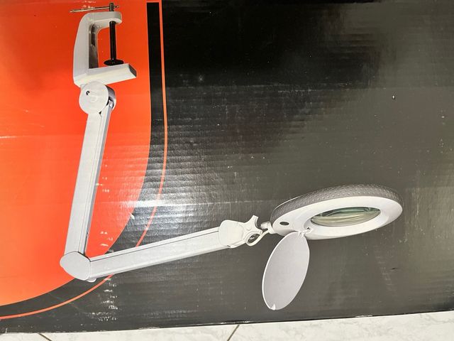 Dettagli del prodottoLampada professionale con braccio snodato e lente d'ingrandimento.