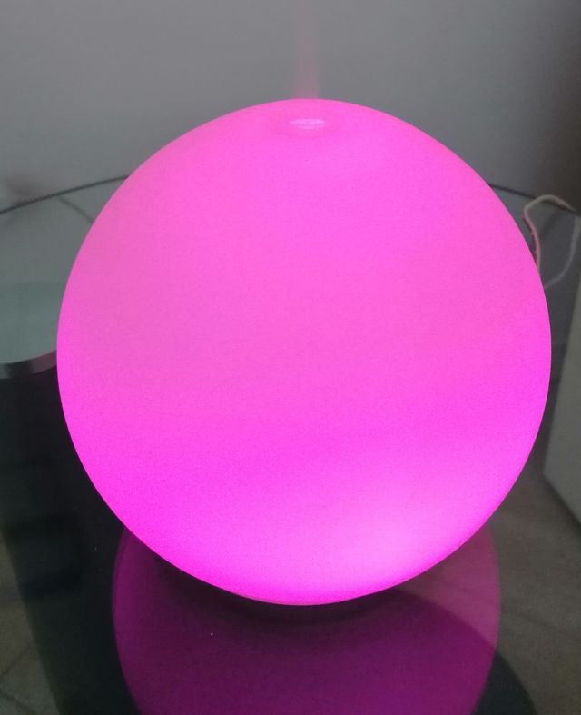 Dettagli del prodottoLampada Purae diffusore a ultrasuoni per aromi ed essenze Sfera in vetro cambiacolore. Si aggiunge l'acqua e qualche goccia di olio essenziale. Si accende premendo da sopra cambiacolore oppure premendo di nuovo si fissa su un colore singolo. Premendo ancora si spegne. Con la scatola originale.