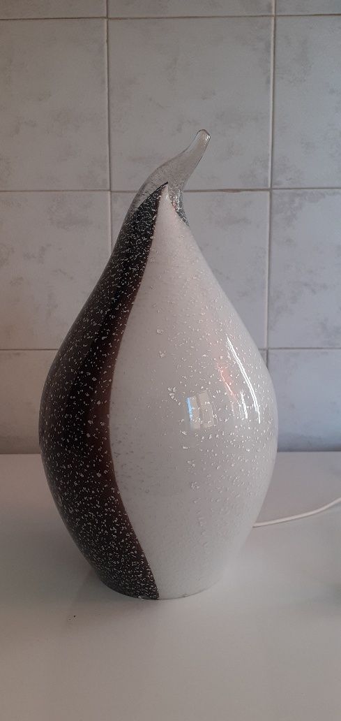 Dettagli del prodottolampada da tavolo in vetro di murano "pinguino"bella e particolare,funzionante,le misure sono:altezza cm 30,larghezza cm 20,da segnalare ,vedi ultime due foto, difetti nel vetro ,monta una lampadina attacco piccolo.