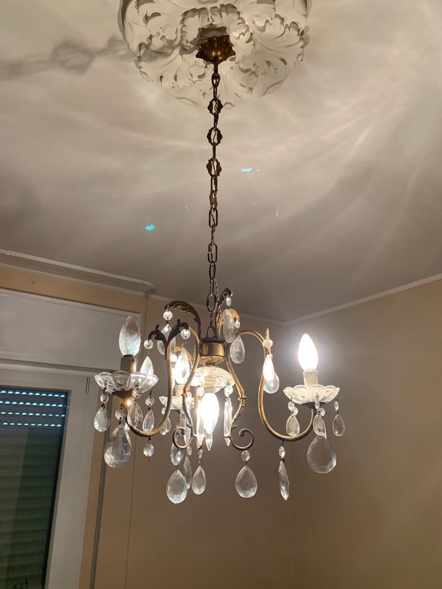 Due lampadari in vetro con diverse strutture, vendibili singolarmente al prezzo del post. Tipico stile ‘a goccia’ anni 60. No spedizione
