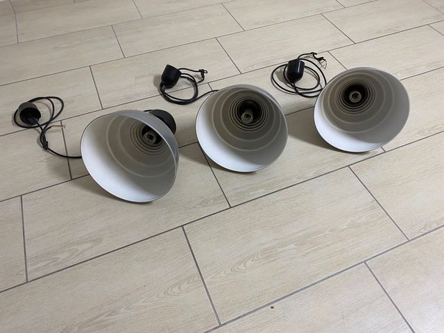 Kit di tre lampadari industriali ( stile lampade fotografiche), diametro parabola 30cm . Vendesi ance singolarmente €. 25