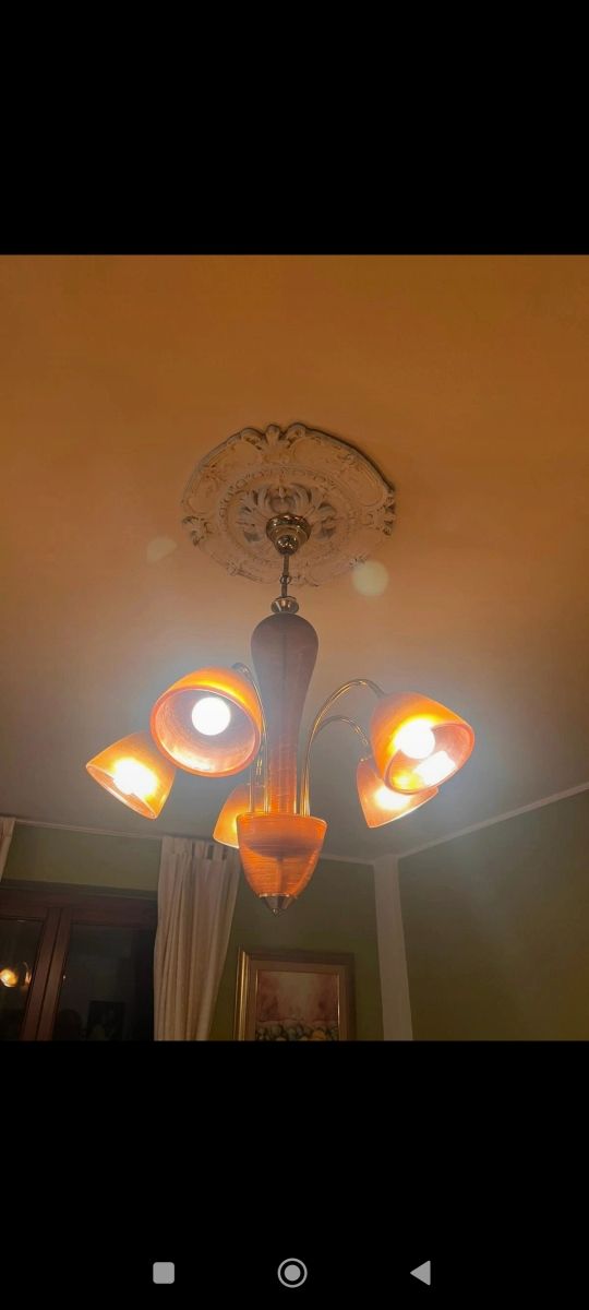 Lampadario 5 luci vetro ambra