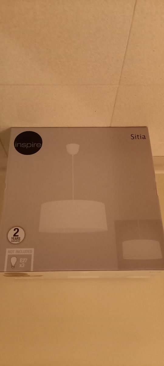 vendo lampadario moderno sitia bianco in cotone diametro 48cm, 3 attacchi per lampadine E27. acquistato presso leroy merlin pagato 59.90 mai utilizzato nuovo .. euro 35