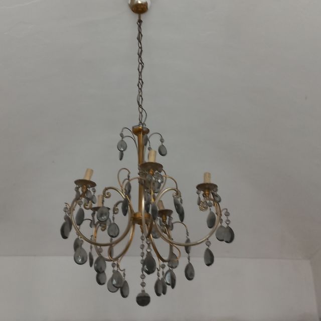 Lampadario a gocce grigie, 5 punti luce