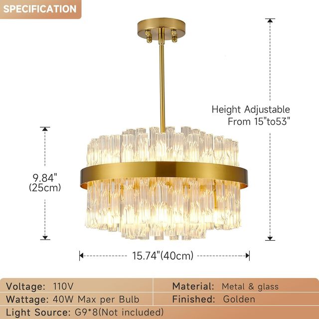 Dettagli del prodottoLampadario in cristallo dorato, lampadario in cristallo a filo soffitto, lampadario rotondo, lampada a sospensione per soggiorno, isola cucina, bagno, tavolo da pranzo, corridoio, G9x 8 luci [Classe di efficienza energetica A]