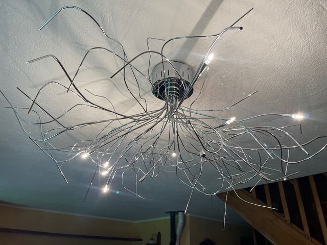 moderno lampadario in metallo con. rami e luci a led , come da foto . con trasformatore, diametro circa un metro, meglio ritiro a mano