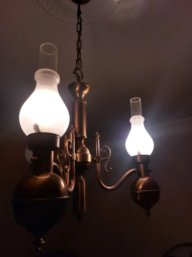 Lampadario ottone con vetro