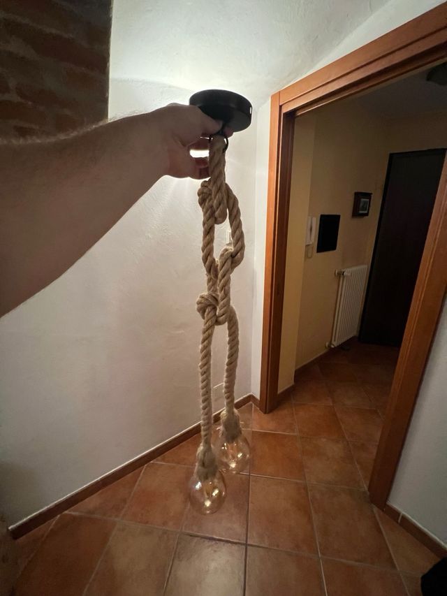 coppia di lampade da parete e da soffitto con lampadine incluse. perfettamente funzionanti. la lampada da parete non ha il gancio per essere appesa (acquistabile in qualsiasi ferramenta)