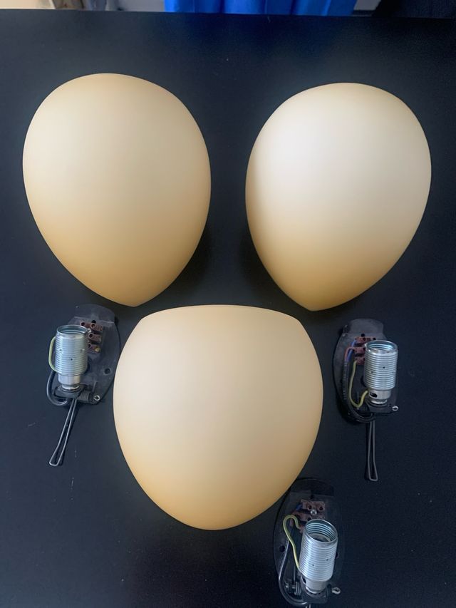 Dettagli del prodotto3 applique da parete , vetro opaco , colore ocra sfumato ,portalampada da 60 watt , ottime condizioni , si possono usare lampadine E27 Misure del prodotto