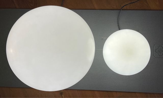 Dettagli del prodottocoppia lampade design sferiche in polietilene adatte sia per esterni che per interni.