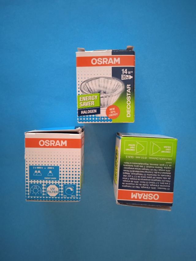 Set di tre lampadine alogene Osram Decostar 51 Star 14 w 12V GU5,3 diametro 51 mm - 36°