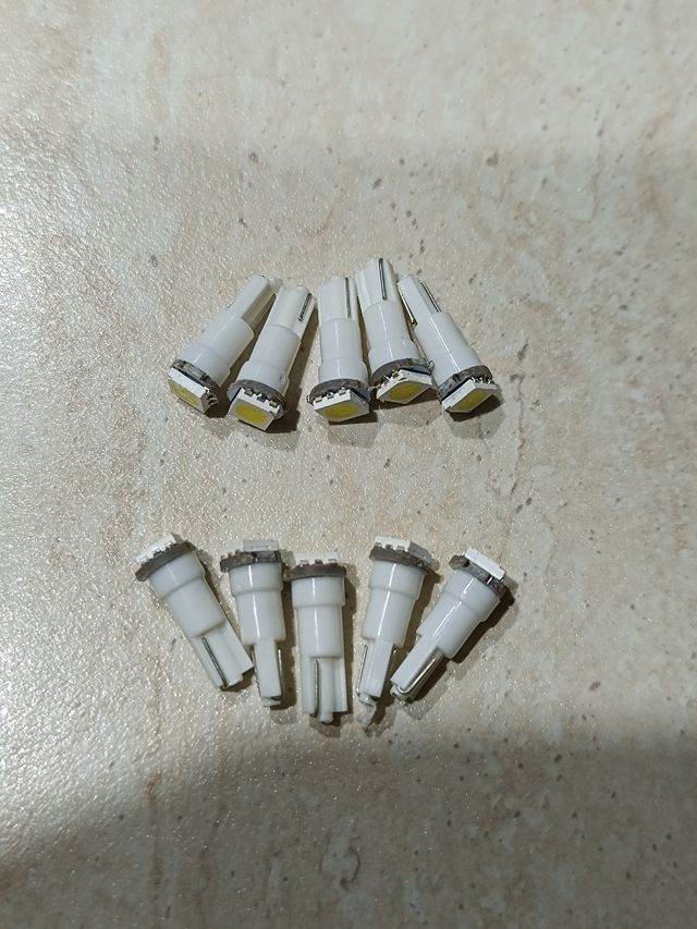 Set di lampadine a LED T5. - 10 pz - Colore bianco. - Ideali per illuminazione interna o cruscotto o 3° stop.