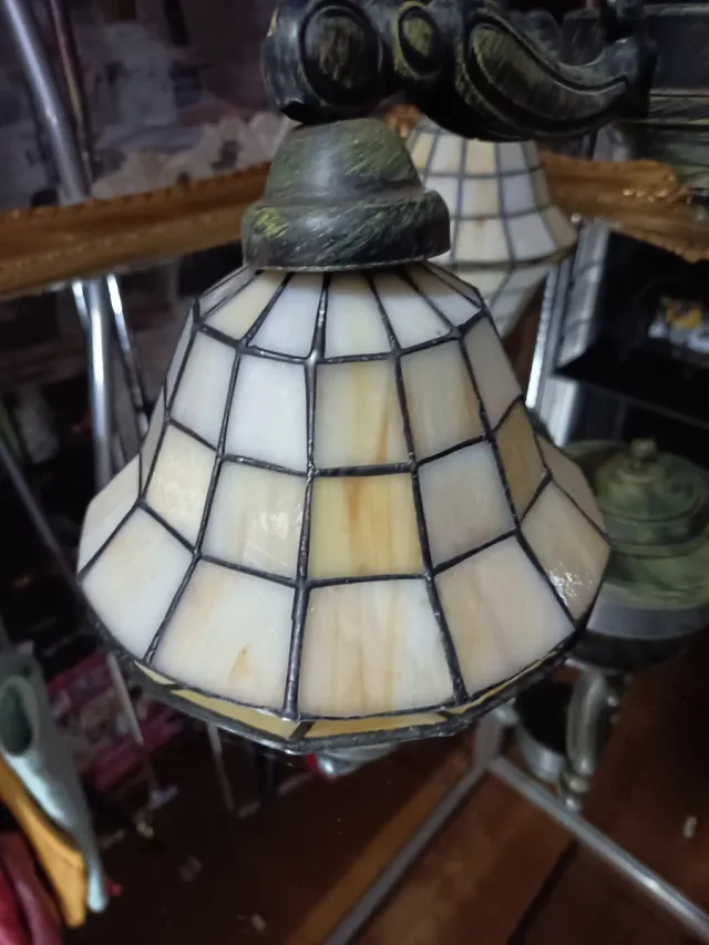 Lampada da soffitto Tiffany in cristallo e metallo