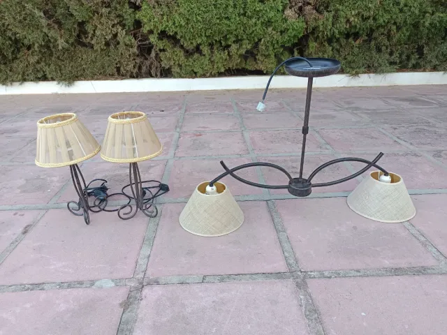 Lampada da soffitto e 2 tavoli in tessuto/metallo