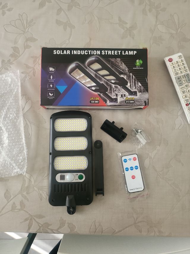 lampioncino solare da esterno completo di staffa con telecomando e sensore di movimento contiene anche kit per montaggio a muro