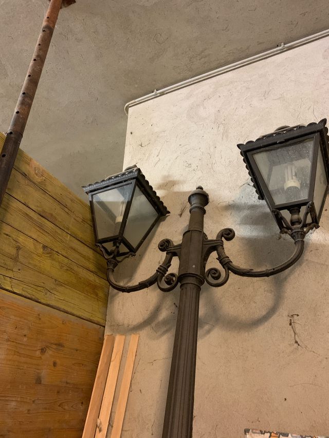 Dettagli del prodottolampione in ferro da giardino con due lanterne, possibilità di inserire lampadine a basso consumo.