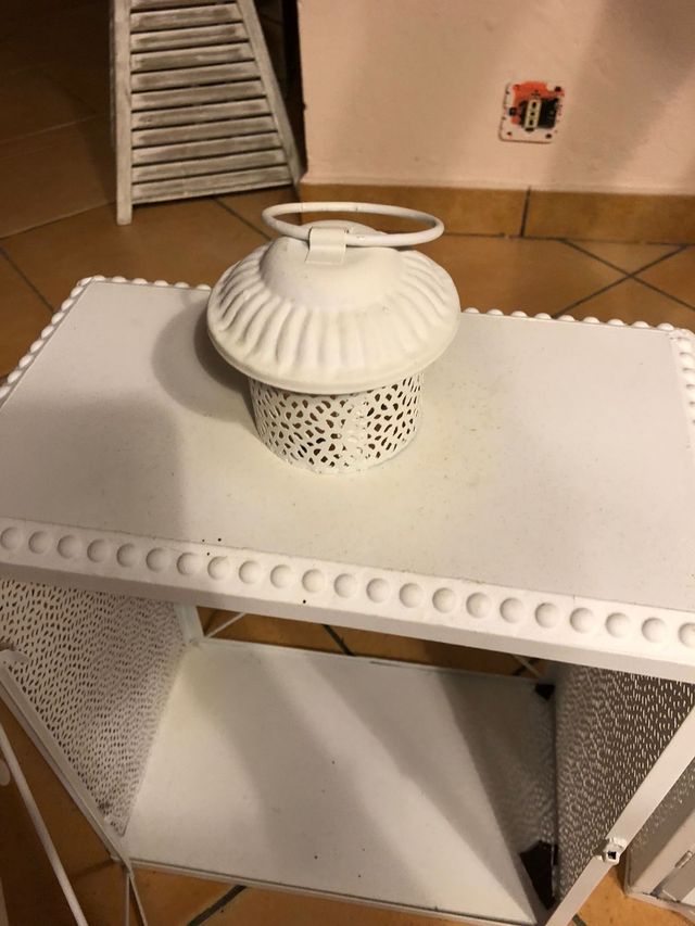 Lanterna in metallo bianco no vetro. misure h 37, lunghezza 31,2, larghezza 18. Disponibilità 3 pezzi