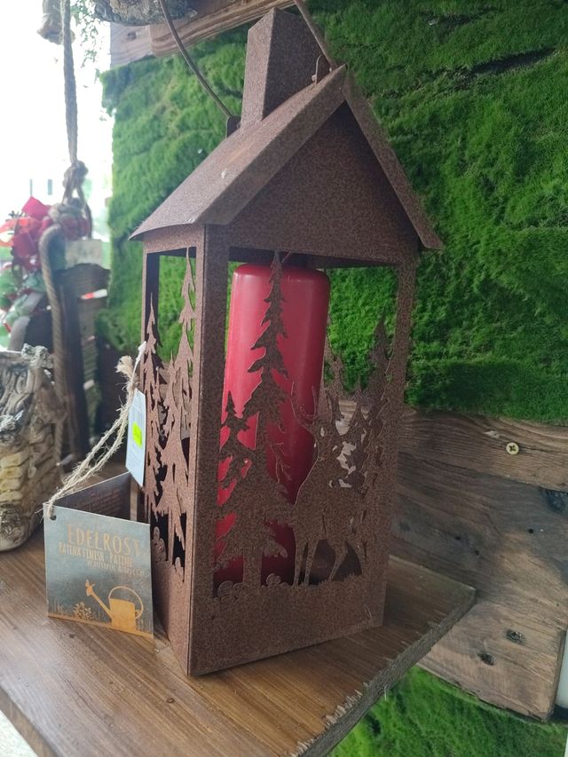Dettagli del prodottolanterna in metallo ruggine adatta in ambienti vintage o giardino completa di candela Misure del prodotto