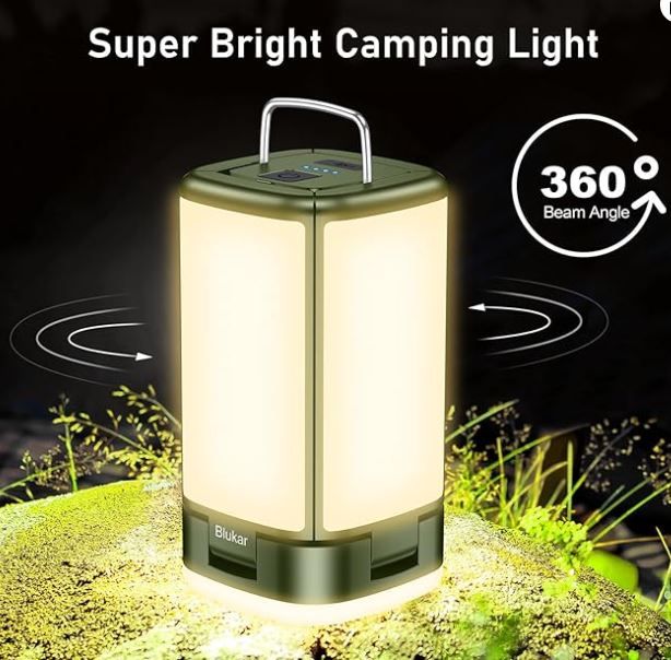 Dettagli del prodottoLanterna da Campeggio Ricaricabile, Blukar Super Luminoso LED Lampada da Campeggio Portatile con 7 Modalità, 10+ ore in Standby Luce da Tenda Impermeabile per Campeggio, Emergenza ecc-Verde Oliva [Classe di efficienza energetica A+++].